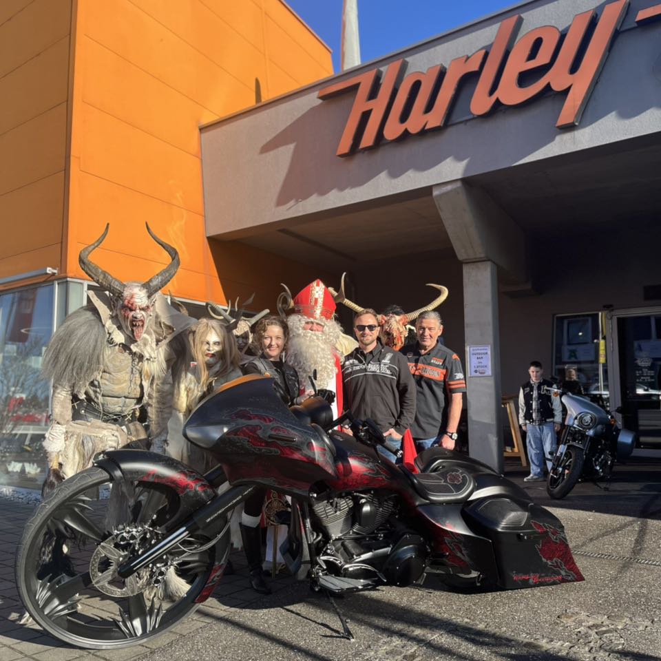Krampus & Nikolo zu Besuch im Harley Davidson